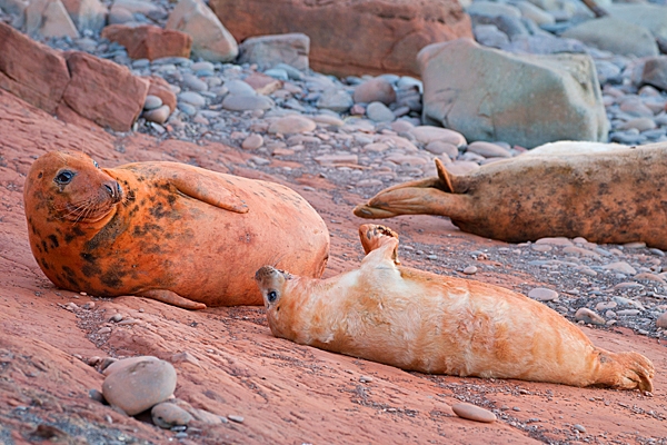 | Rock dust orange dyed Grey Seal mum and pup 2. Nov. '20.