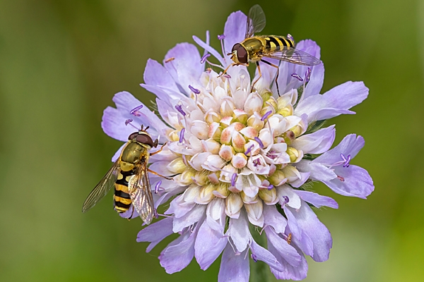 | Hoverflies on scabious. Jul. '23.