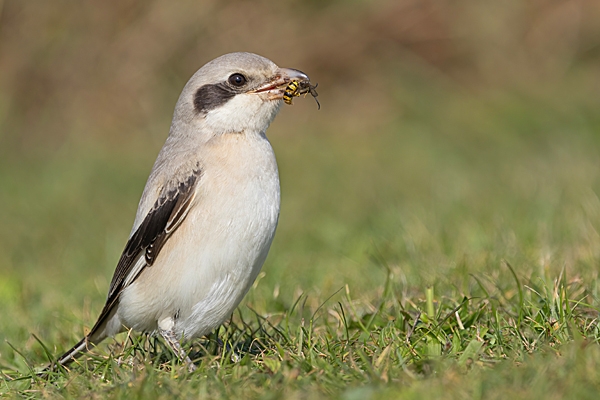 Steppe grey Shrike with wasp. Sep. '24.