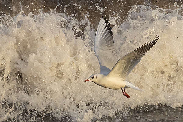 Black headed Gull and wave. Dec. '24.